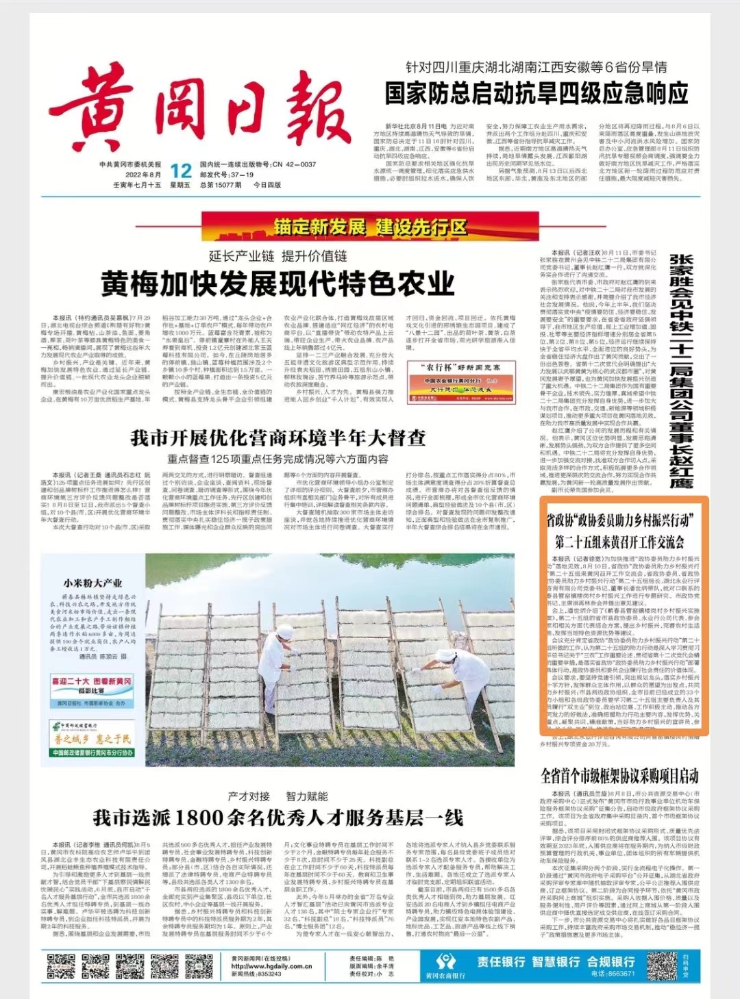 黄冈日报:省政协“政协委员助力乡村振兴行动”第二十五组来黄召开工作交流会