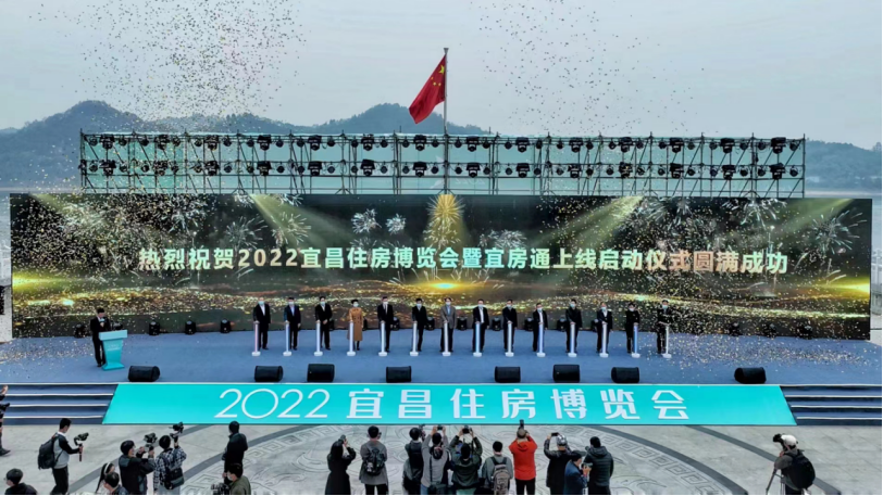 中国房地产业协会副会长兼秘书长陈宜明、宜昌市房地产业协会会长尤永石分别以视频、现场方式出席开幕式并致辞。刘丰雷、潘世炳、危社高、尤永石、市住建局、市自然资源和规划局、市地方金融工作局、市公共资源交易中心、宜昌住房公积金中心、市税务局、市政务服务和大数据局、西陵区人民政府领导和嘉宾上台,共同启动“宜房通”上线和2022年住博会开幕。