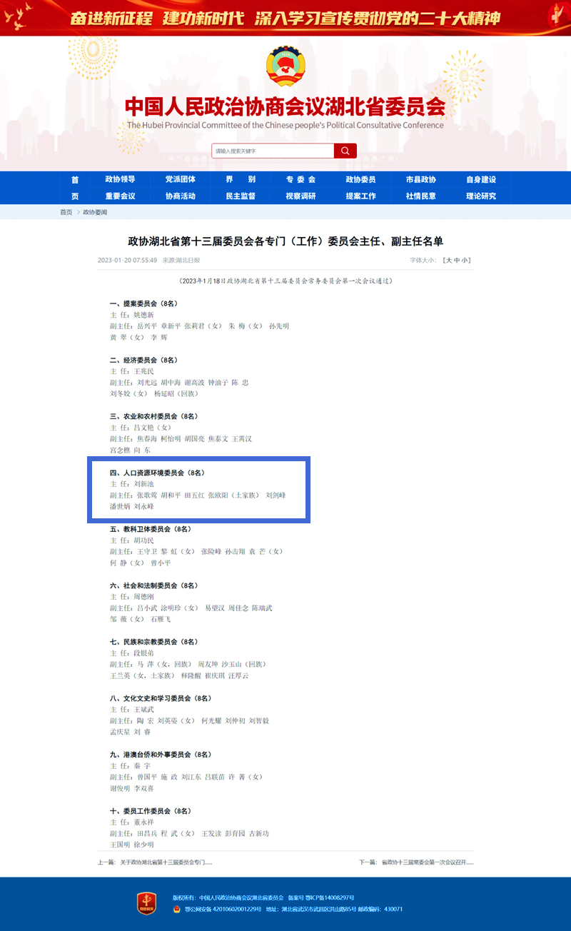 1月18日,省政协十三届常委会第一次会议在汉召开。会议审议通过十三届省政协副秘书长名单,专门(工作)委员会设置的决定,各专门(工作)委员会主任、副主任名单等。省政协常委、永业行董事长潘世炳当选为政协湖北省第十三届委员会人口资源环境委员会副主任。