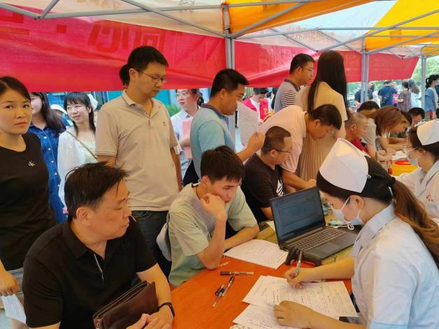 在献血处,大家在医护人员的指引下,有序填表登记、抽血化验、测量血压,经验合格后撸起袖子奉献热血!一袋袋充满体温的血液汇聚成温暖的力量,凝聚着献血人的爱心,一张张献血证,彰显着奉献精神。
