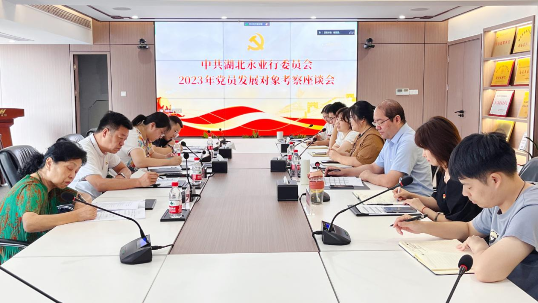 2023年9月6日,武昌区委统战部副部长、区工商联党组书记、会员企业党委书记吕志新,武昌区工商联副主席王琦,会员企业党委全职党建指导员李祖豪,专职党建指导员郭群一行莅临永业行,对5名党员发展对象进行座谈考察。永业行党委委员、常务副总裁吴学锋,组织人事部总经理李斯,各支部党员发展对象及党员群众代表参加座谈。