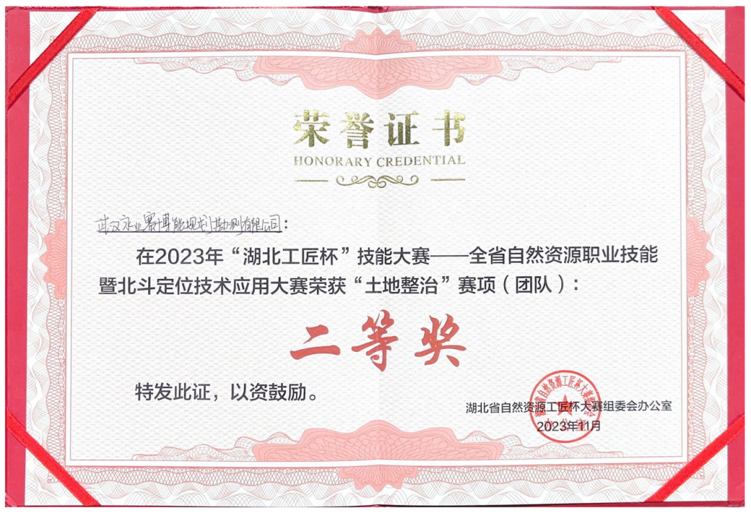 2023年“湖北工匠杯”技能大赛--全省自然资源职业技能暨北斗定位技术应用大赛“土地整治”赛项二等奖