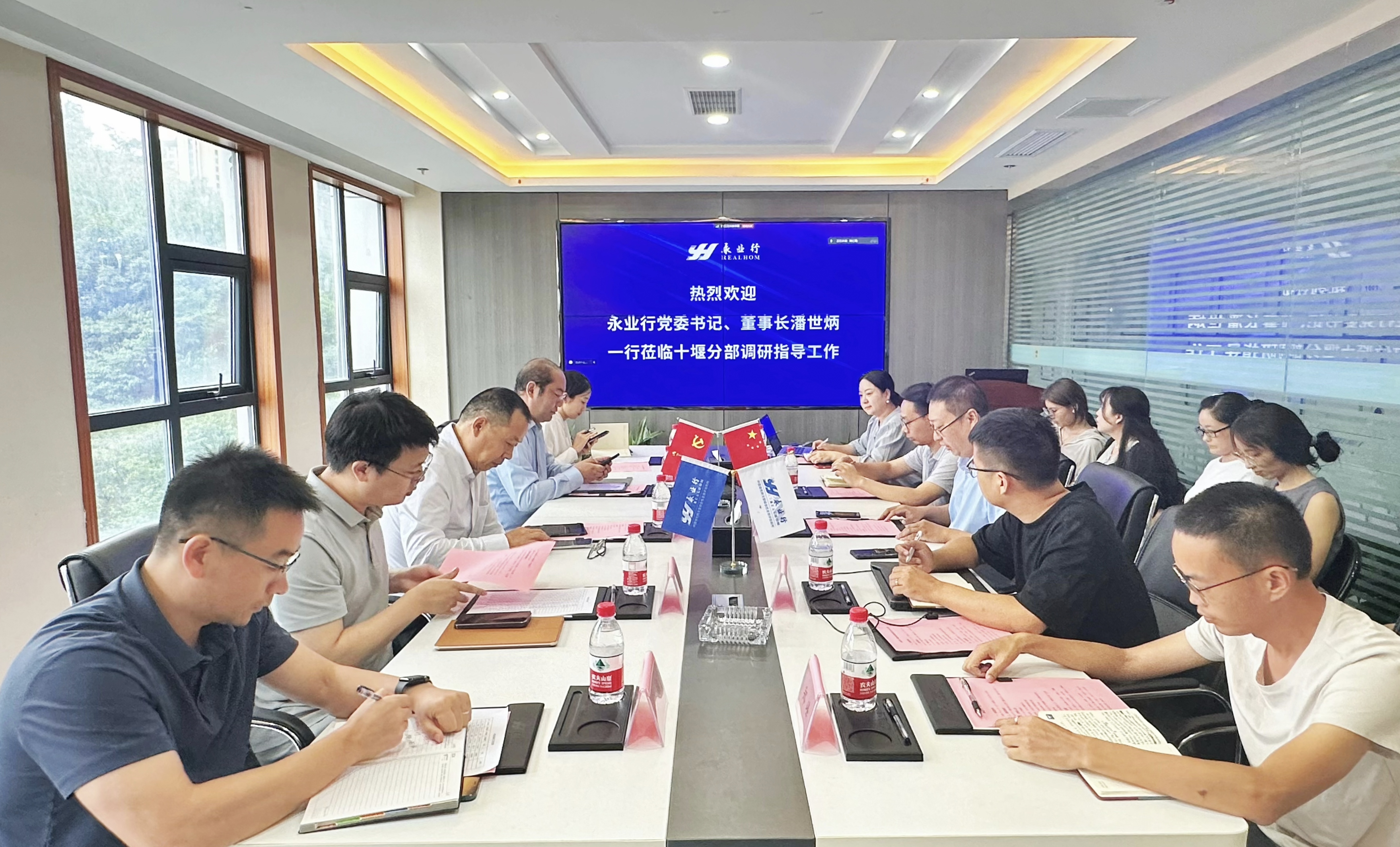 2024年9月11日,永业行董事长潘世炳、常务副总裁吴学锋、高级副总裁文云波一行莅临永业行十堰分部调研指导工作,十堰分部总经理周小川及管理团队、员工代表参加座谈。