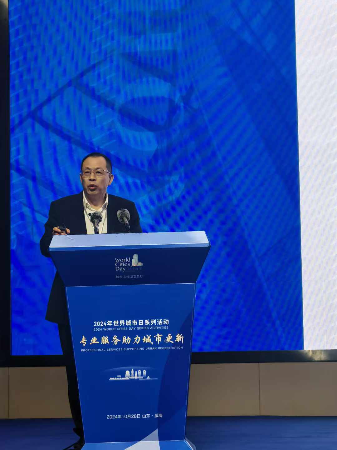 2024年10月28日,中国房地产估价师与房地产经纪人学会(下称“中房学”)在威海召开2024年世界城市日中国主场活动“专业服务助力城市更新”研讨会。中房学会长柴强出席会议并致辞。世界估价组织协会荣誉会长、新加坡测量师与估价师学会会长林兰源参加会议。中房学副会长、永业行董事长潘世炳受邀参加会议并作主题发言。