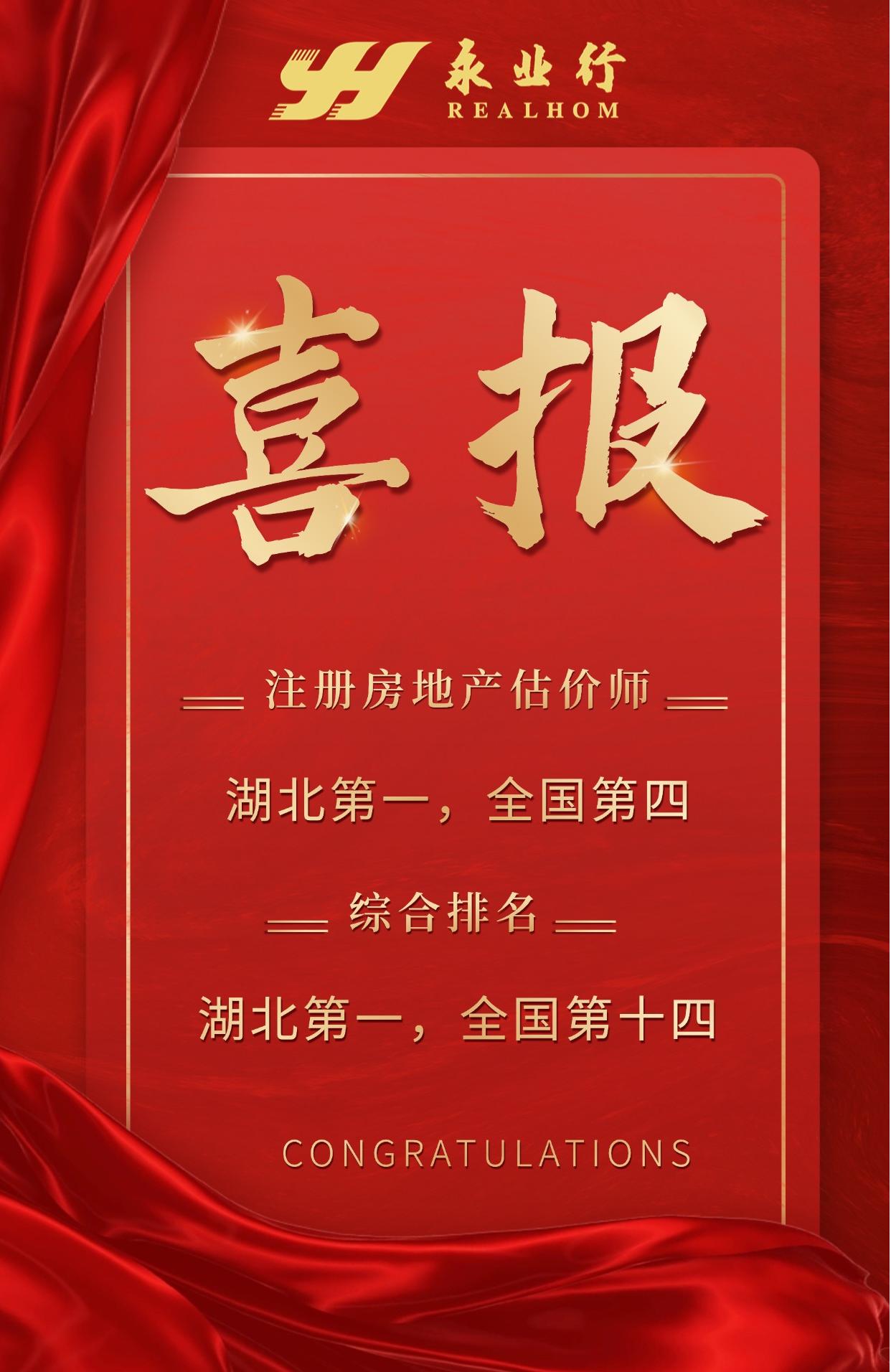 永业行蝉联全国一级房估机构综合排名湖北第一
