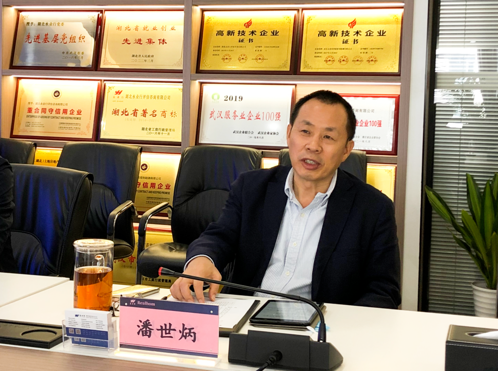 潘世炳对贺卫东一行表示热烈欢迎,感谢孝感市委市政府对永业行的信任和支持,并从发展历程、战略规划、业务布局、社会责任、党建引领等方面介绍了永业行的相关情况,以及永业行发挥专业优势在服务经济社会高质量发展等方面所做工作。