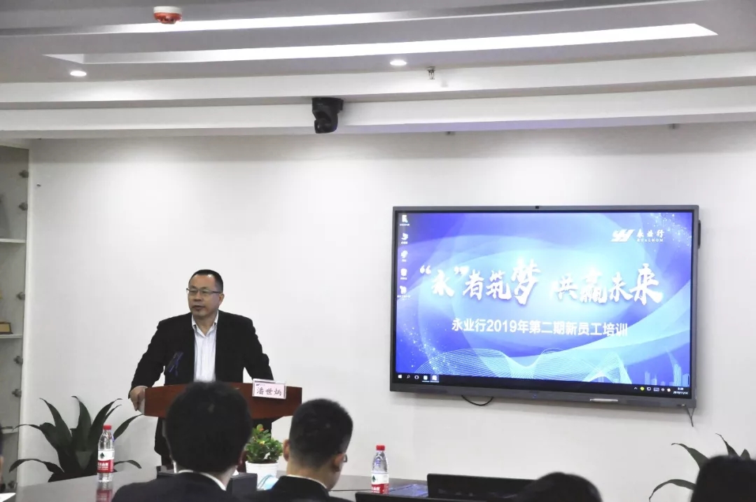 永业行董事长兼总裁潘世炳向新员工表示了热烈的欢迎及殷切的期许,并为新员工进行了《职业发展的四个视角》为主题的授课。从宏观背景、行业选择、公司发展战略和人才需求及培养等多角度讲述了如何设计出一份能引导自己走向成功的职业生涯规划,打造成功的职业生涯。同时也让新员工对公司的发展历程及战略有了更深入的了解,对公司更加认可,充满信心。