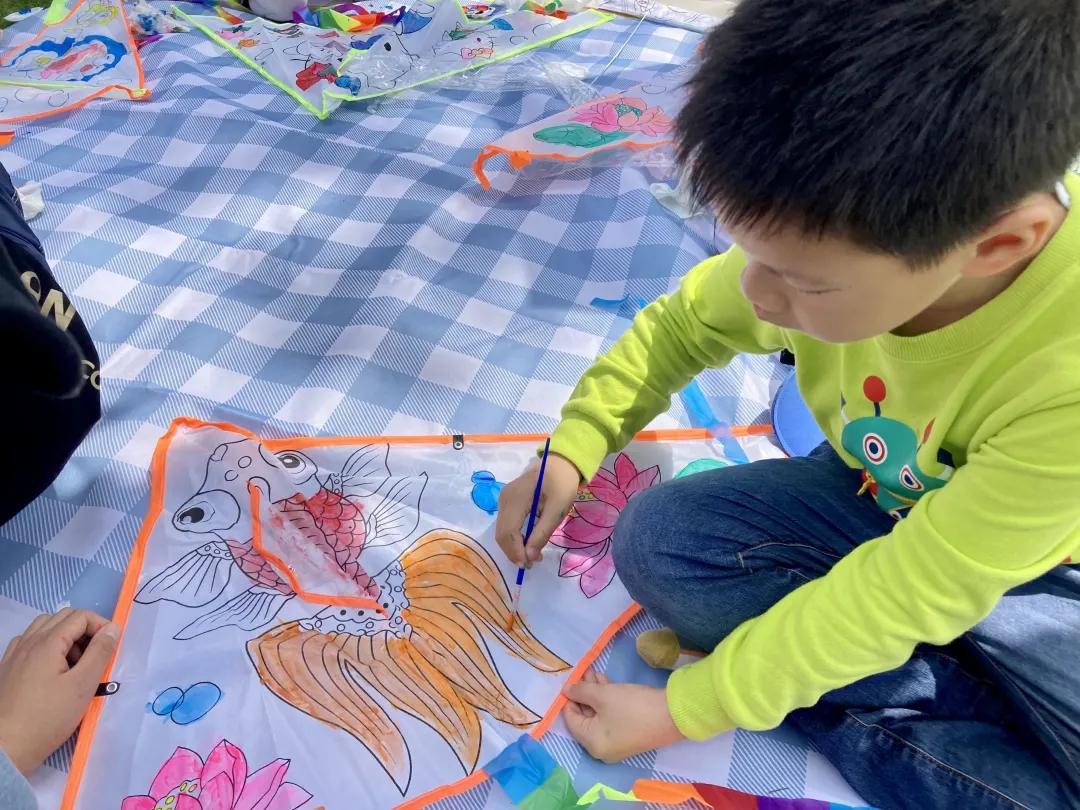 本次活动在亲子风筝DIY中温情启幕。孩子们在与家长的互动中,用五颜六色的画笔认真涂画,让心中的色彩跃然风筝之上,一笔一画勾勒出的是独一无二的风筝,也是初夏里难忘的亲子时光。逐渐升高的气温并没有阻挡孩子们的热情。风筝绘制好后,孩子们迫不及待的拉着家长开始放风筝,奔跑的孩子,欢呼雀跃,可爱至极。家长们也仿佛回到了童年时代,活动中充满了欢声笑语!