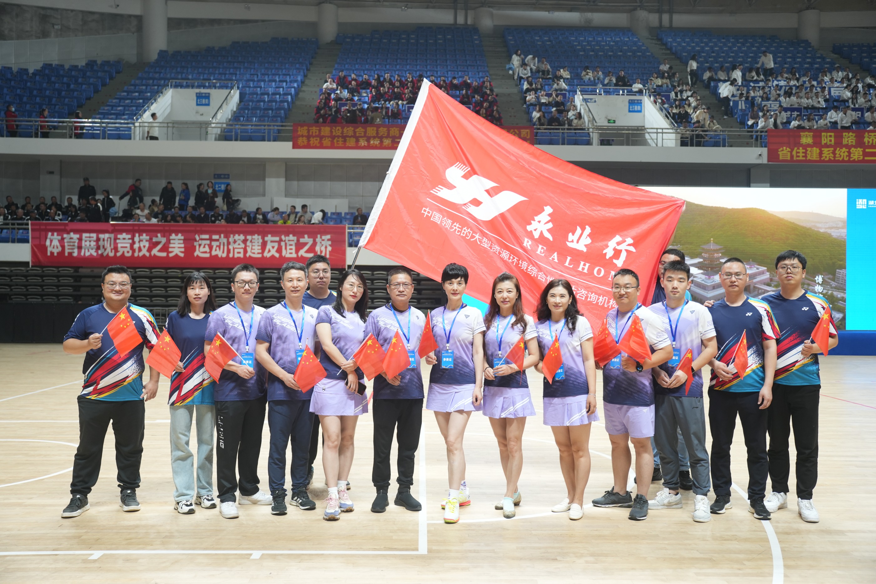 2024年10月17日,全省住建系统“奋进新征程·同心向未来”第二届职工运动会在襄阳市体育馆精彩开赛。来自省住建厅以及全省17个市州住建系统的干部职工和26家住建行业企业代表队的共计千余名选手欢聚一堂,同场竞技。永业行选派10名羽毛球选手组建“羽之队”参加比赛,共享运动盛宴。